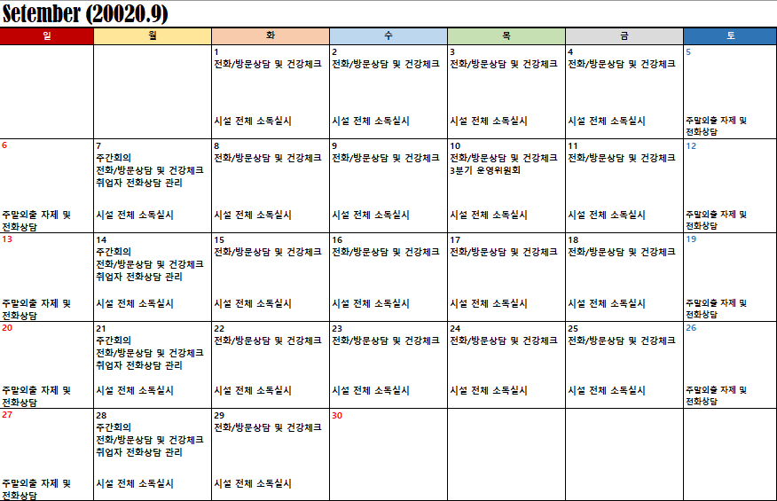 2020³â 9¿ù ½Ã¼³ÀÏÁ¤