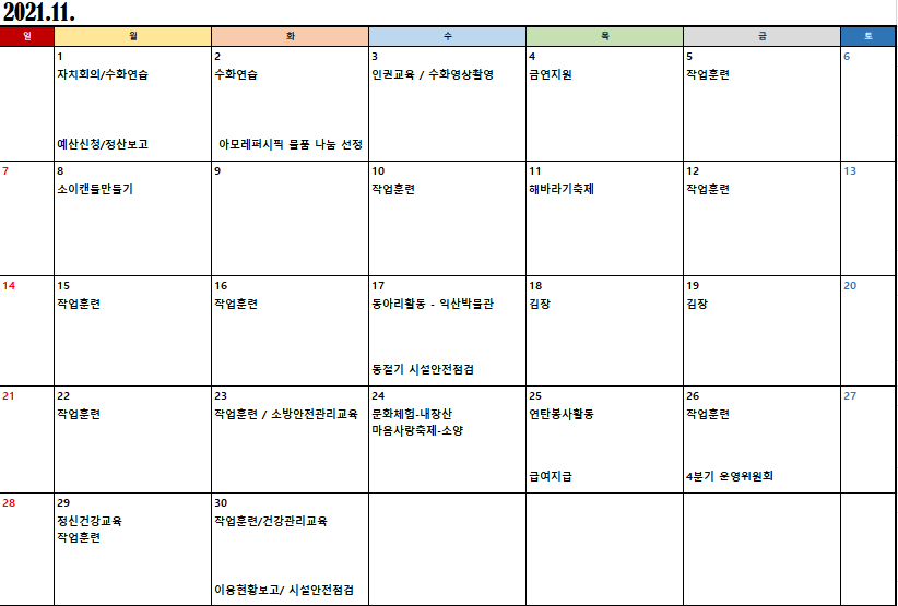 2021³â 11¿ù ½Ã¼³ÀÏÁ¤