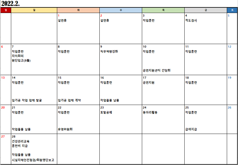 2022³â 2¿ù ½Ã¼³ÀÏÁ¤