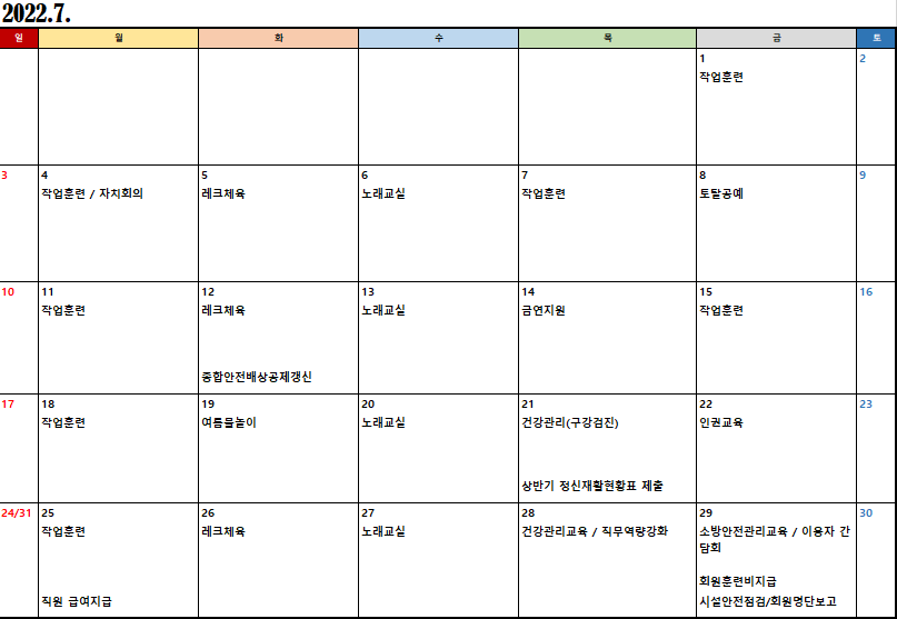 2022³â 7¿ù ½Ã¼³ÀÏÁ¤