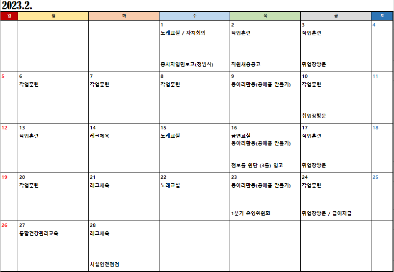 2023³â 2¿ù ½Ã¼³ÀÏÁ¤