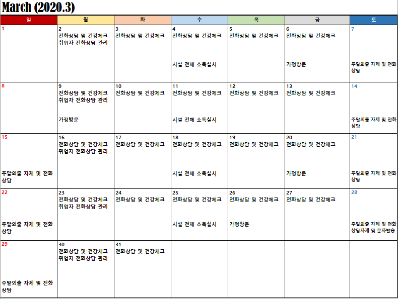 2020³â 3¿ù ½Ã¼³ÀÏÁ¤